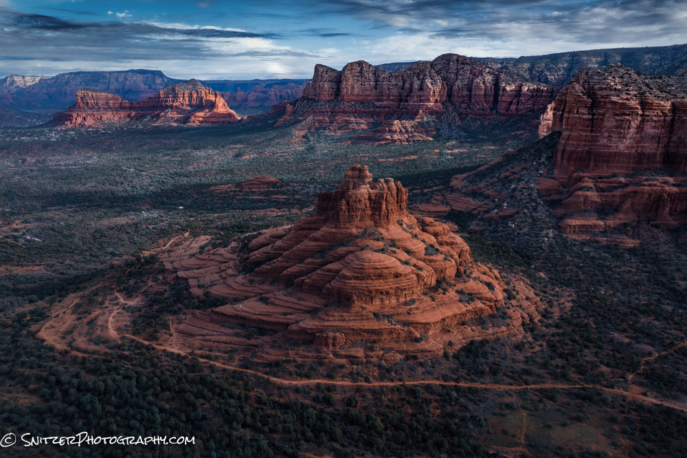 Heading South, catching morning sunrise in Sedona, Ariz . Time to fire up the drone. Bell Rock is “lit”!